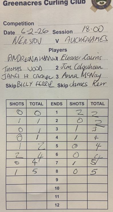 The team of Billy, James H, Thomas and Andrena met up with a team from Auchenames CC on Friday.